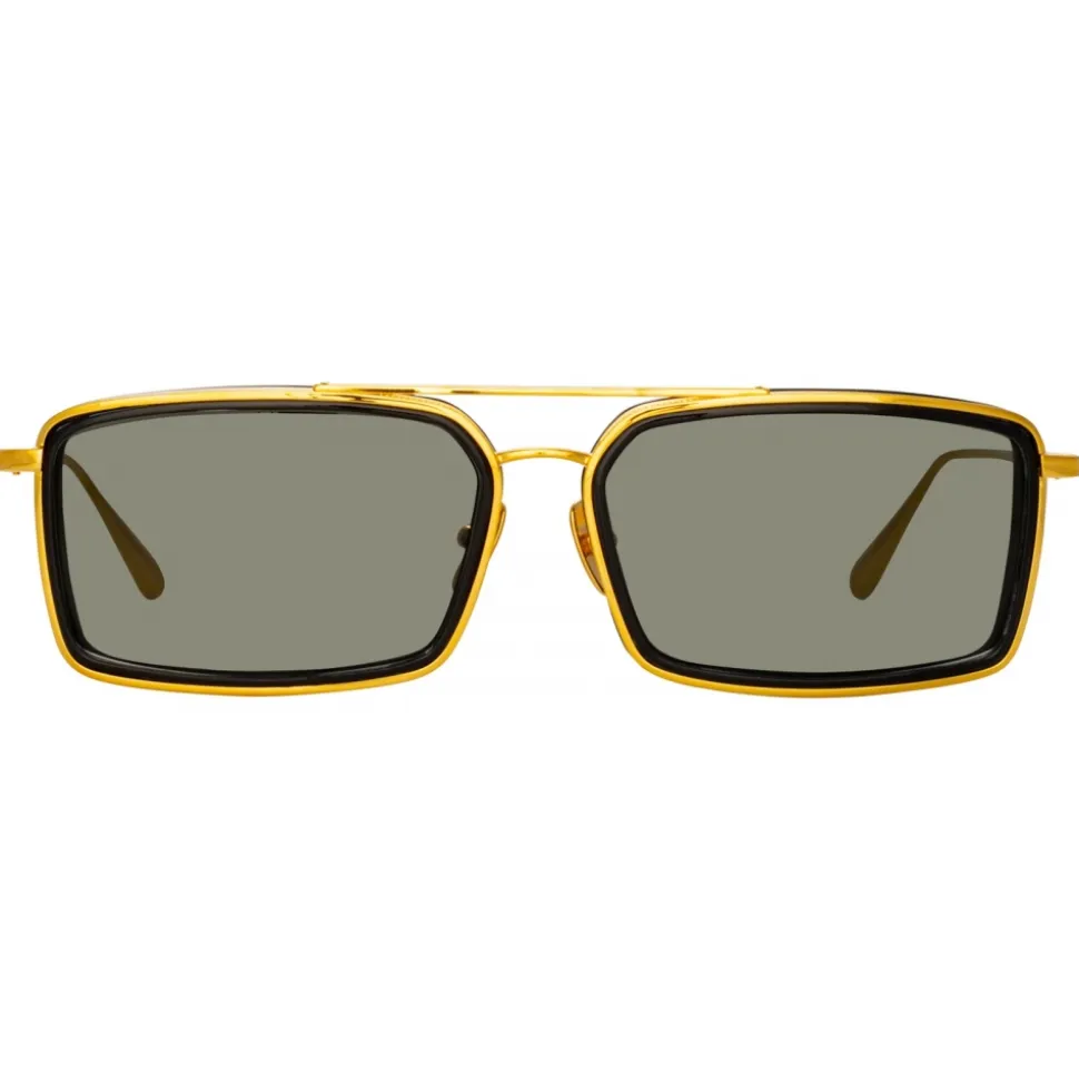 Linda Farrow – Cassia Rectangular Sunglasses in Yellow Gold Grey – LFL1392C1SUN – Linda Farrow Eyewear