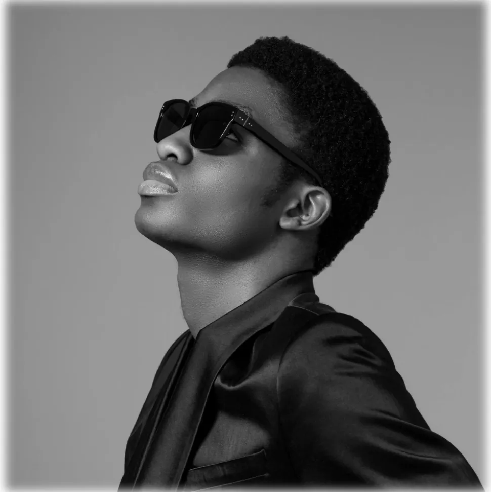 Rooted in a signature design language of the brand the Cedric frame combine glossy acetate and sleek titanium for an elevated style. Crafted from black acetate the beveled acetate temples transition into sculpted tips finished with inset matt nickel colour plating highlights.