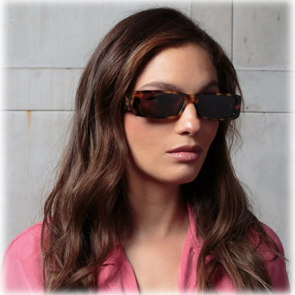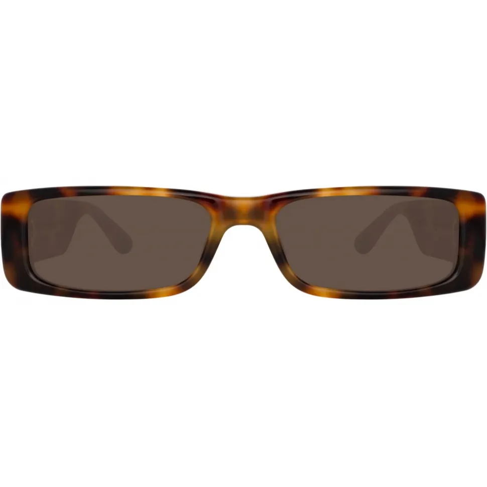 Formed from rich tortoise shell acetate the Dania sunglasses embody LINDA FARROW’s effortless style. The slim rectangular silhouette features sculpted nose pads and temple tips to provide comfort to the wearer.