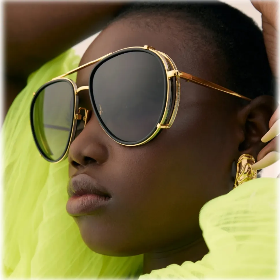 Linda Farrow – Dimitri Aviator Sunglasses in Yellow Gold – LFL1362C2SUN – Linda Farrow Eyewear