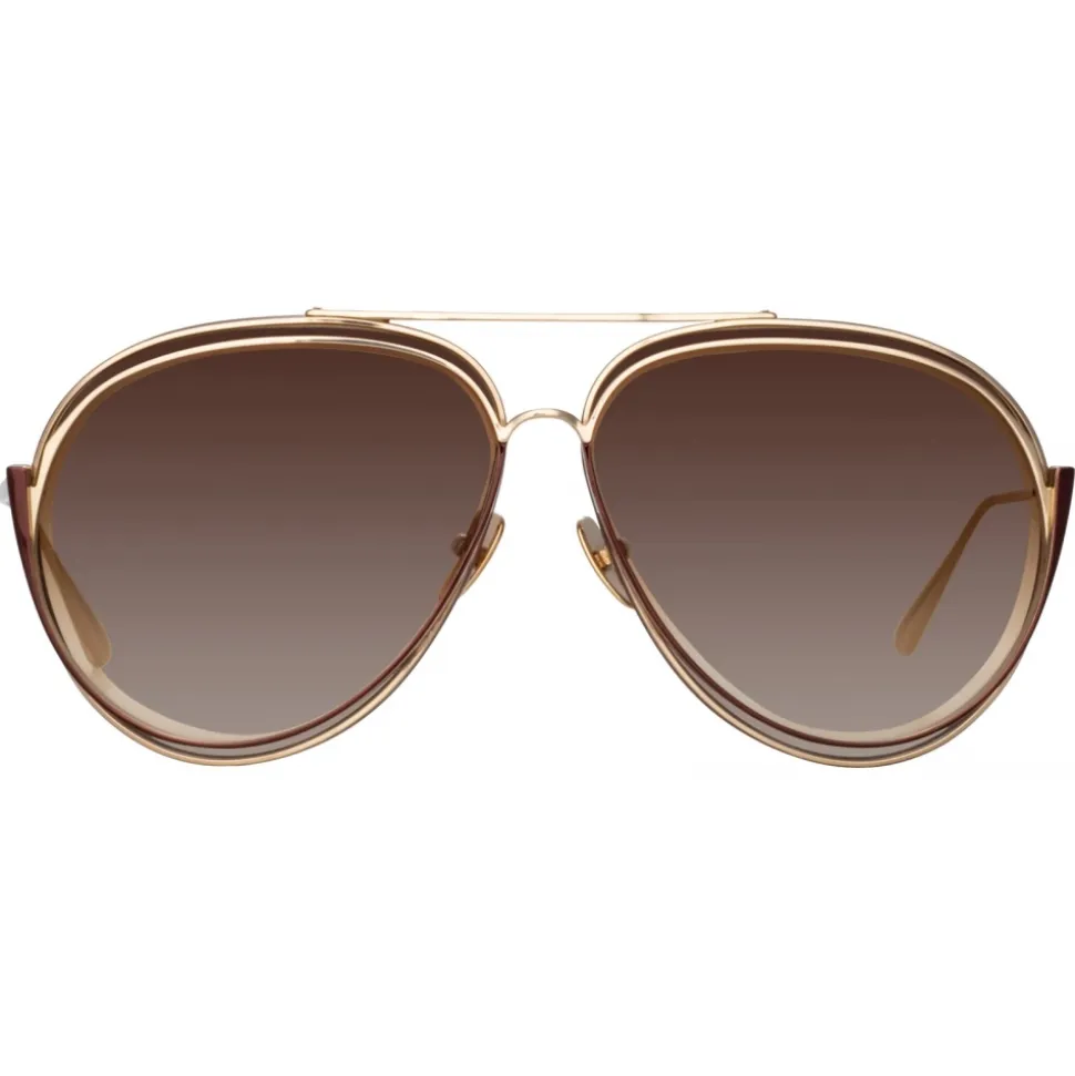 Linda Farrow – Francisco Aviator Sunglasses in Light Gold – LFL1410C3SUN – Linda Farrow Eyewear