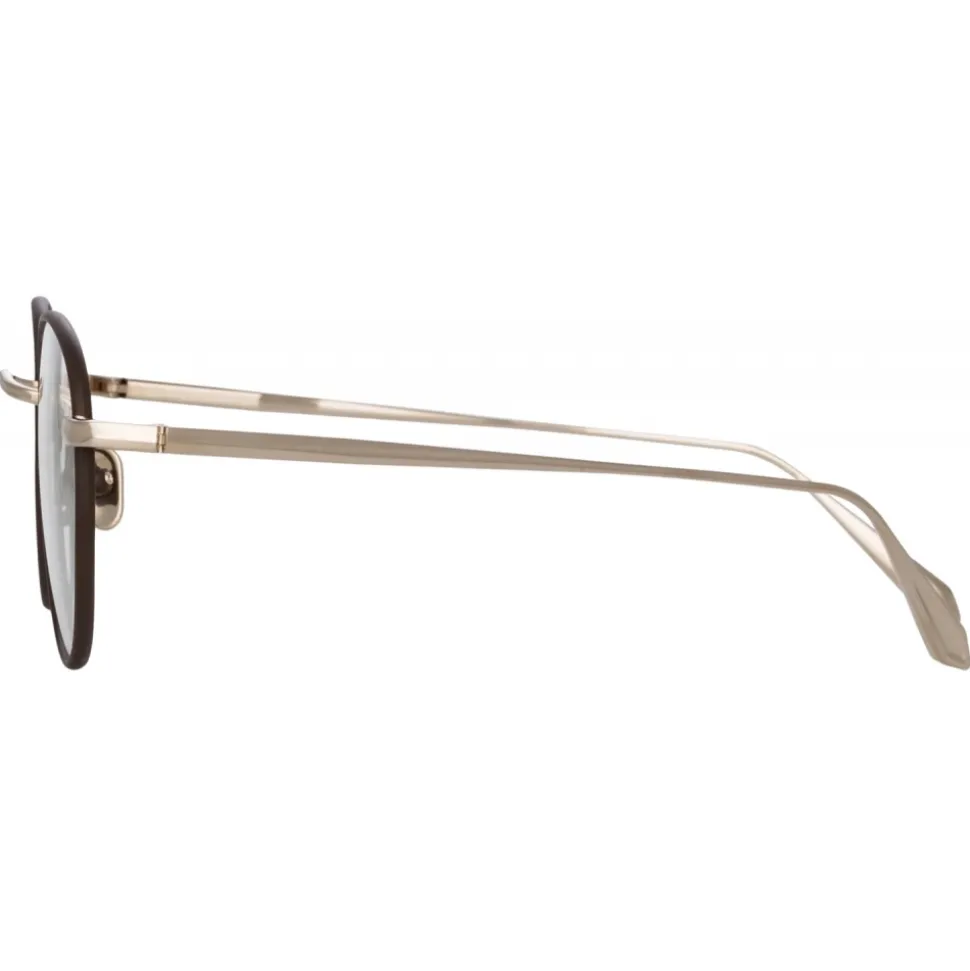 Jules is crafted from pure 22 carat light gold plated Japanese titanium with contrasting rims hand painted in matt brown.