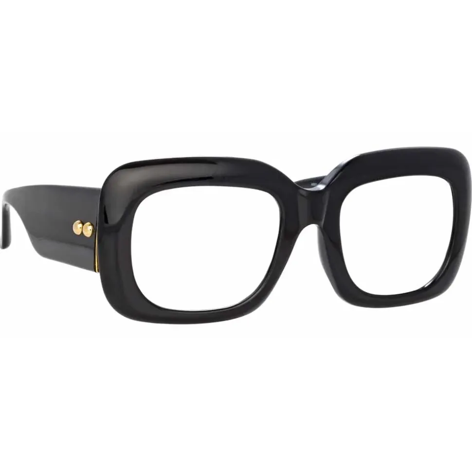 The silhouette of the season, these ultra-chunky, hand polished black acetate Linda Farrow optical glasses bring the glamour. Finished with yellow gold signature detailing including raised pins and hinge caps, emanating a new feeling of luxury.