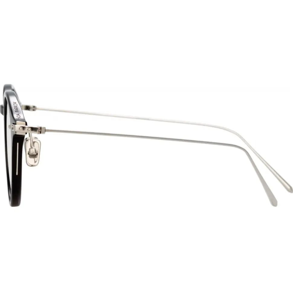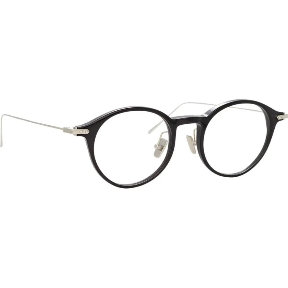 With an aesthetic that’s firmly rooted in the world of architecture and design, these unisex oval optical glasses from the new Linda Farrow LINEAR collection bring together hand polished black Italian acetate with 18-22 carat white gold-plated titanium. Understated details such as gold linear accents, raised pins and a lasered logo set this modern classic style apart.