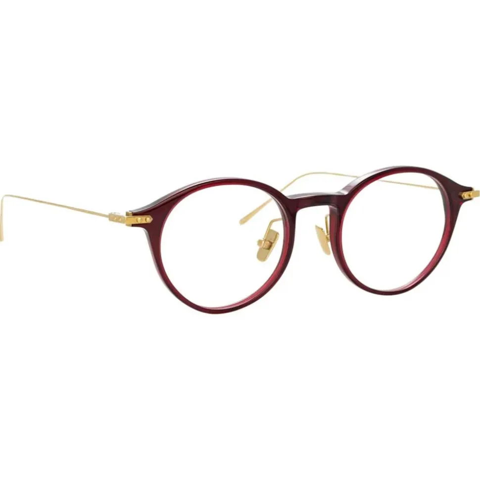 With an aesthetic that’s firmly rooted in the world of architecture and design, these unisex oval optical glasses from the new Linda Farrow LINEAR collection bring together hand polished burgundy Italian acetate with 18-22 carat light gold-plated titanium. Understated details such as gold linear accents, raised pins and a lasered logo set this modern classic style apart.
