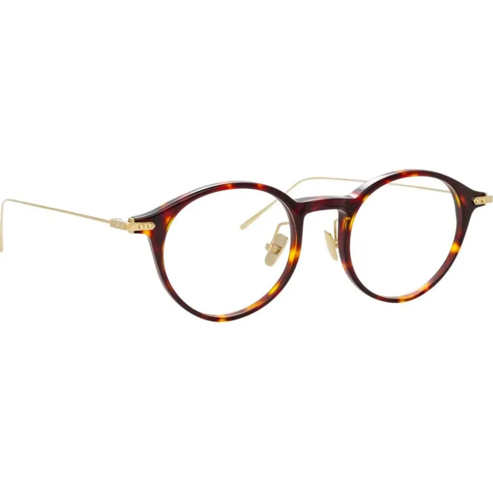 With an aesthetic that’s firmly rooted in the world of architecture and design, these unisex oval optical glasses from the new Linda Farrow LINEAR collection bring together hand polished tortoiseshell Italian acetate with 18-22 carat gold-plated titanium. Understated details such as gold linear accents, raised pins and a lasered logo set this modern classic style apart.