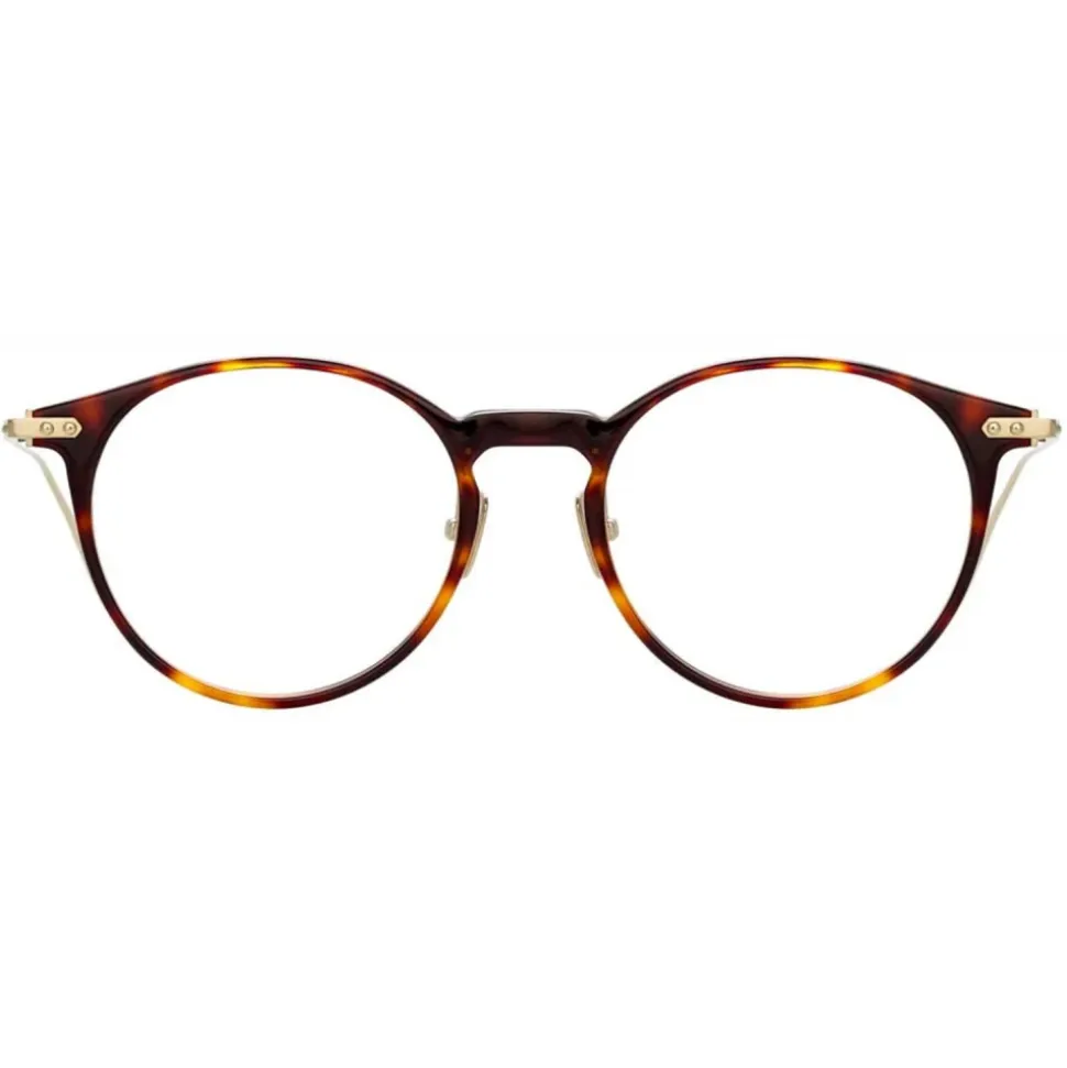 A timeless oval silhouette from the new Linda Farrow LINEAR collection, these unisex optical glasses pair tortoiseshell Italian acetate with ultra-thin 18-22 carat gold-plated titanium. Engineered for unrivalled fit and comfort, innovative design details including gold linear accents inset the frame, raised pins and a lasered logo complete this style for the ultimate in everyday luxury eyewear.