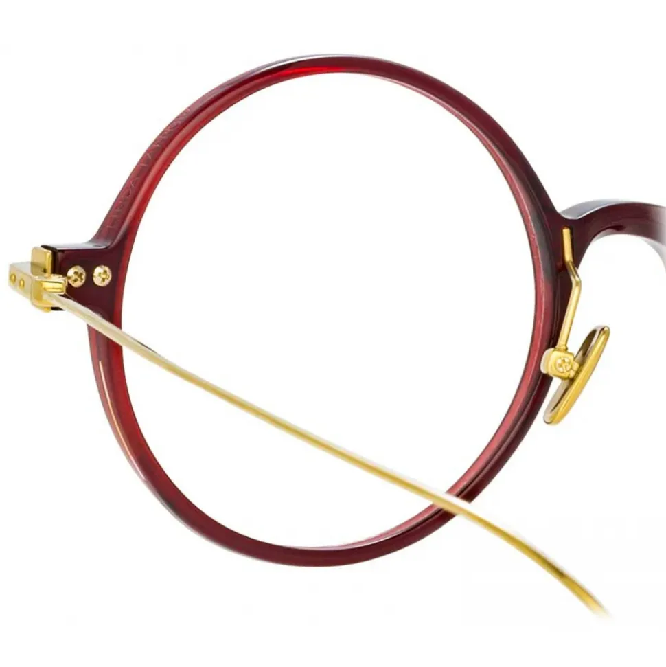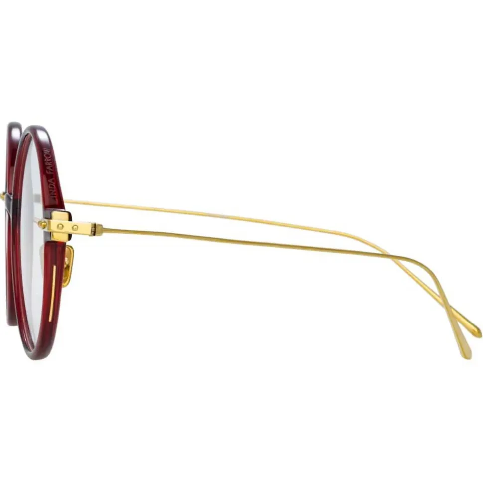 Linda Farrow – Linear Savoye Round Optical Glasses in Burgundy – LF09C4OPT – Linda Farrow Eyewear