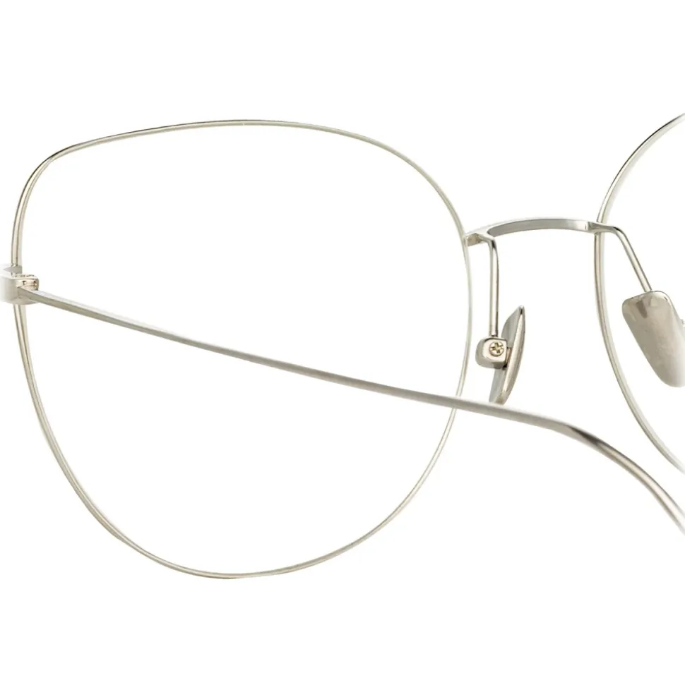 Linda Farrow – Maya Cat Eye Optical Glasses in White Gold – LF38C2OPT – Linda Farrow Eyewear