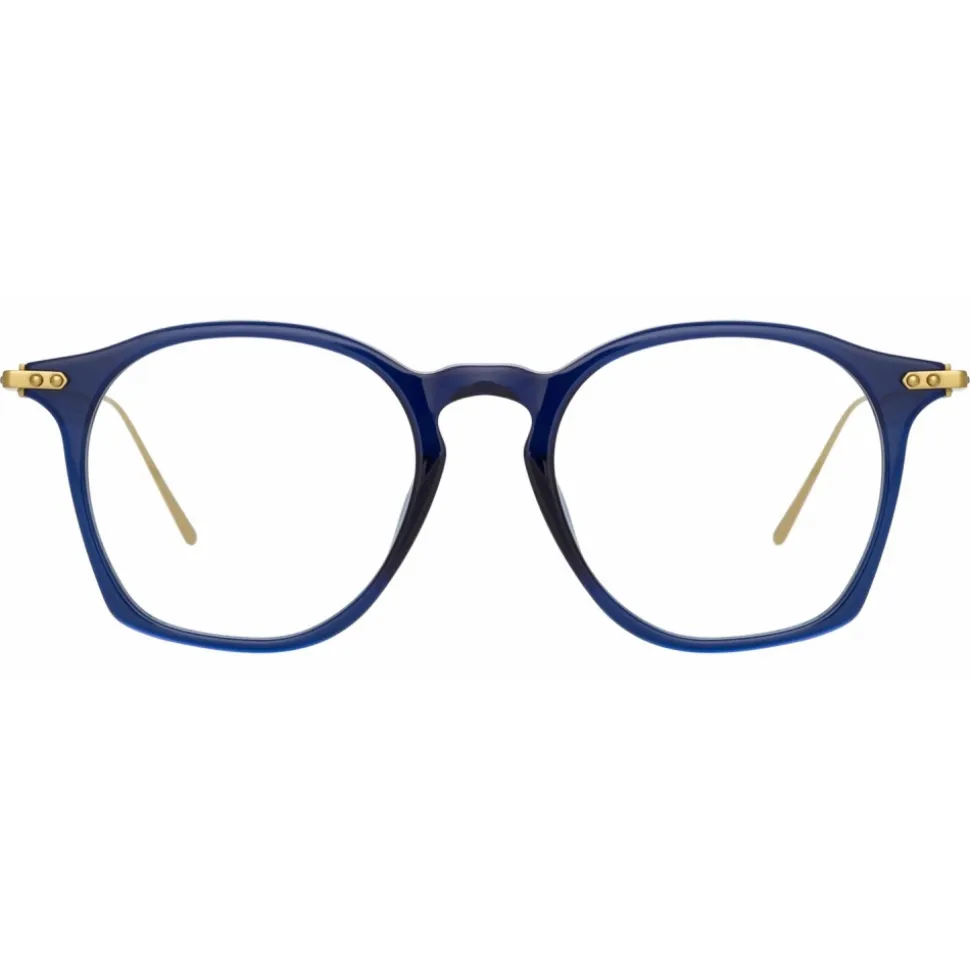 This square optical frame features angular corners for a modern feel. The Mila glasses from the LINDA FARROW Linear collection are engineered to be slim and lightweight. Crafted from dark tortoise shell acetate the painstakingly polished frame front is matched with adjustable titanium nose pads custom engineered titanium hinges. The 22 carat luna gold plated detailing transitions to ultra lightweight titanium temples curved to offer an Asian fitting. Subtle logo detailing at the brow and a gold linear line running along the side of the rim complete the frame. Also available in European fit.