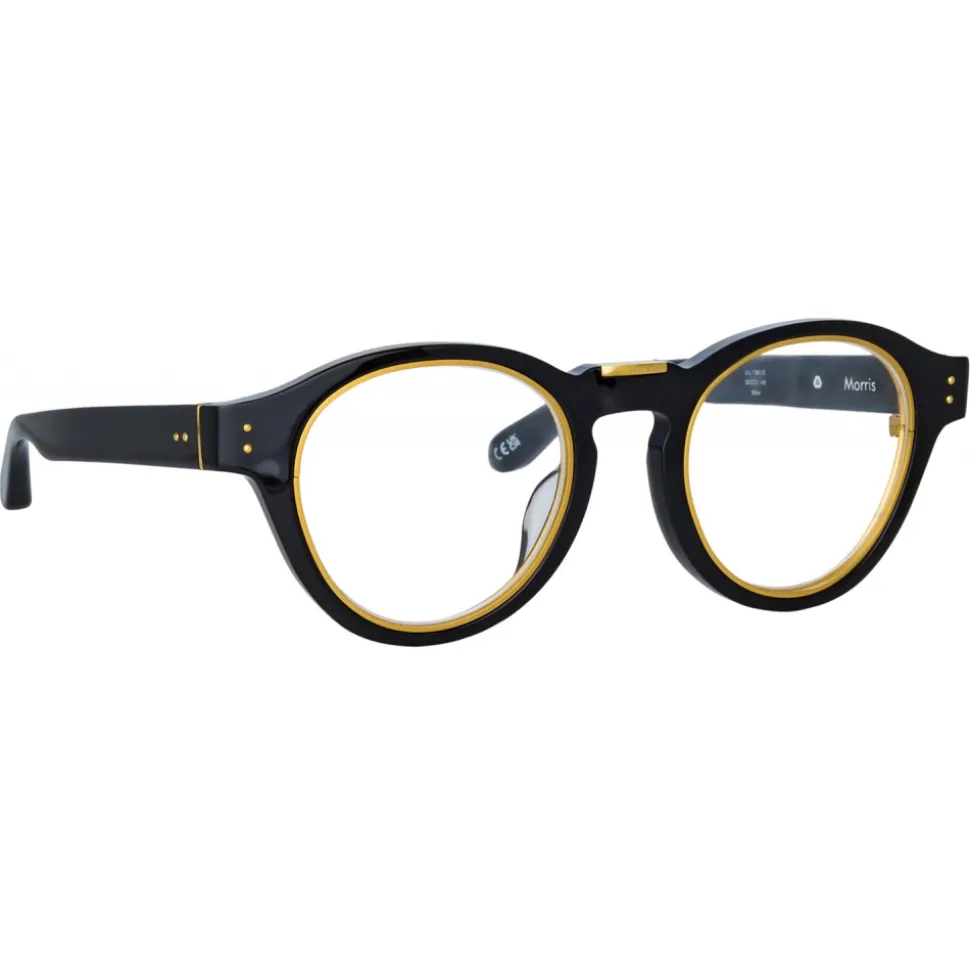 The limited edition Morris optical frame from the LINDA FARROW collection is a stand out piece for the season. Sculpted from recycled black acetate the oval frame is adorned with delicate gold plated titanium detailing around the inner eye and at the bridge.