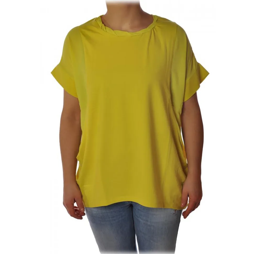 Liu Jo – Oversized T-Shirt with Collar Pattern – Yellow – T-Shirt – Made in Italy – Luxury Exclusive Collection