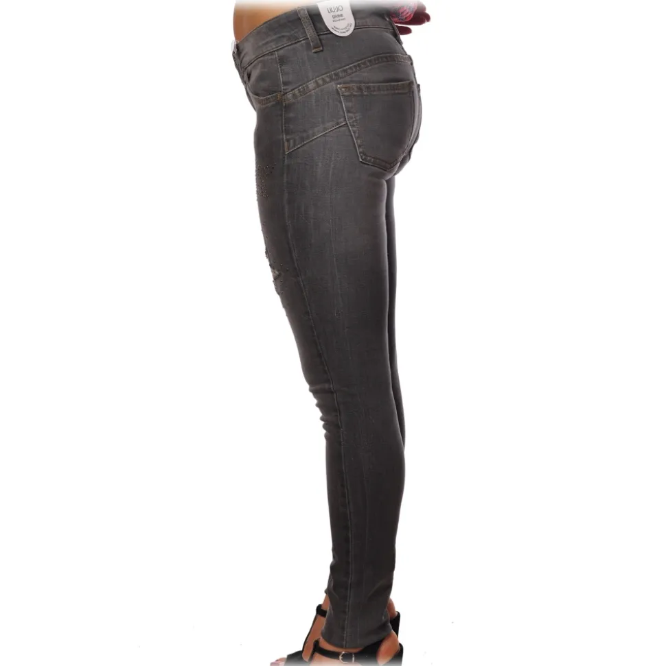 Liu Jo – Skinny Jeans with Stars Details – Gray – Trousers – Made in Italy – Luxury Exclusive Collection