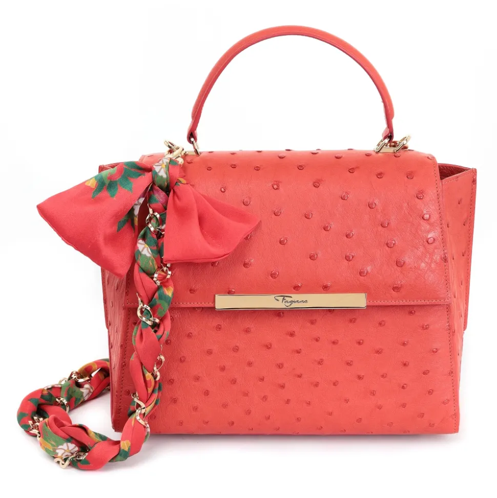 Maison Fagiano – Ostrich Leather – Coral – Artisan Bag – The New City Exclusive Collection – Luxury – Handmade in Italy