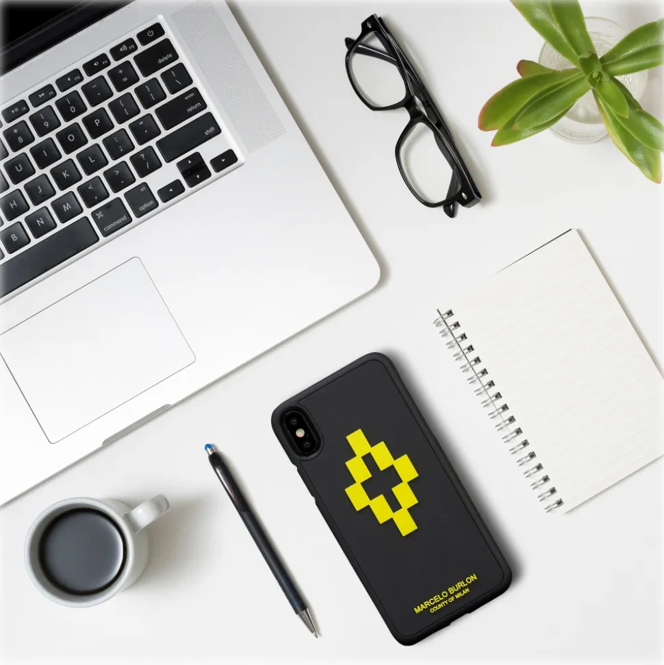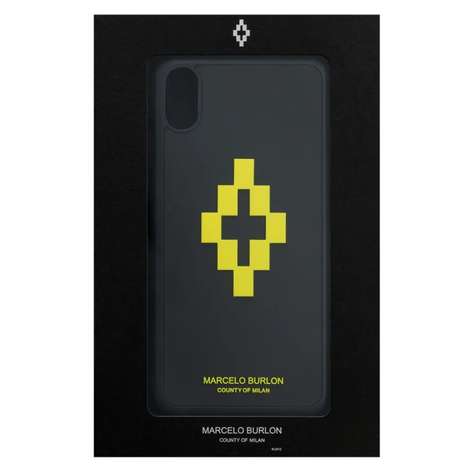 Marcelo Burlon printed iPhone XR case. Black case with 3D Cross Yellow printed embellishment. Suitable for iPhone.