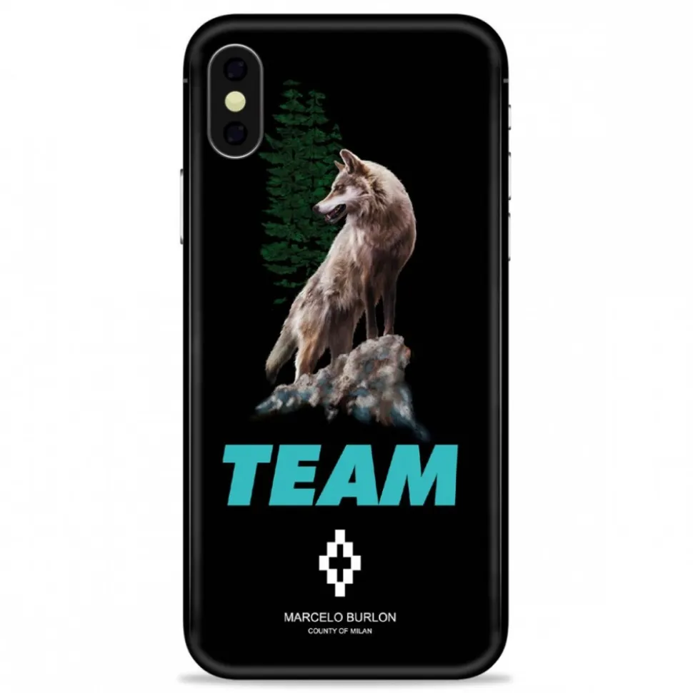 Marcelo Burlon printed iPhone X case. Black case with multicolor Team Wolf printed embellishment. Suitable for iPhone.