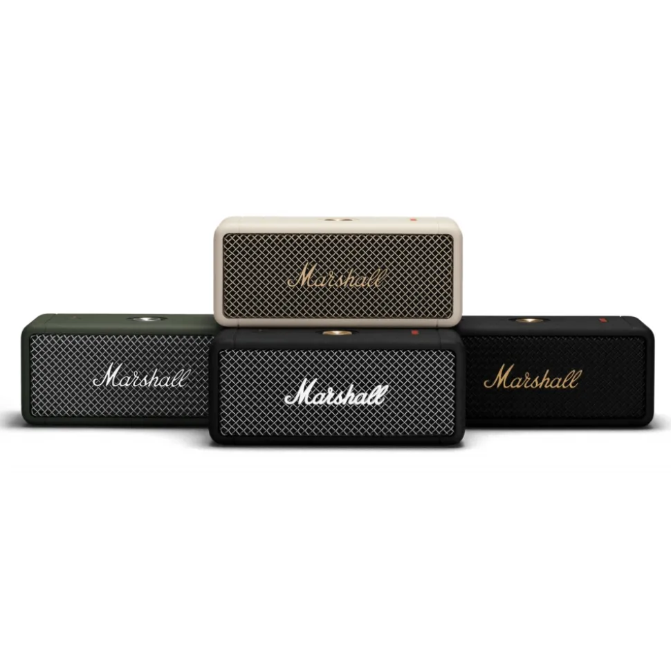 Emberton is a compact portable speaker with the loud and vibrant sound only Marshall can deliver. Emberton utilises True Stereophonic, a unique form of multi-directional sound from Marshall. Experience absolute 360° sound where every spot is a sweet spot. With 20+ hours of playtime, you can enjoy the superior sound of Marshall for hours on end.