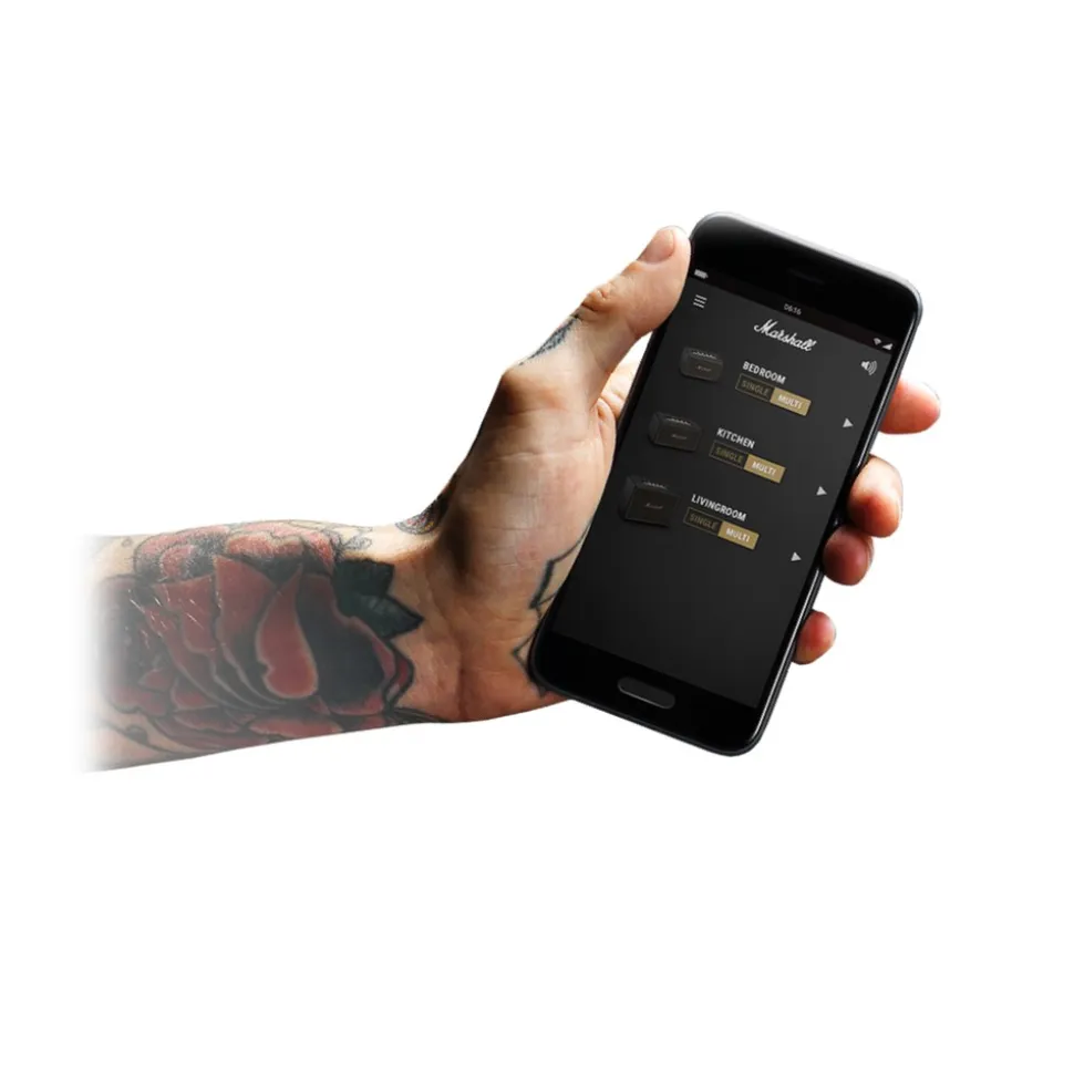 The simple, easy to use Marshall Multi-Room app will have you listening to your favourite music in no time. Use it to set up your single or multi-room wireless system, customise your one-touch presets, adjust the intensity of the LEDs, tweak the equaliser or switch between speakers in a matter of seconds.