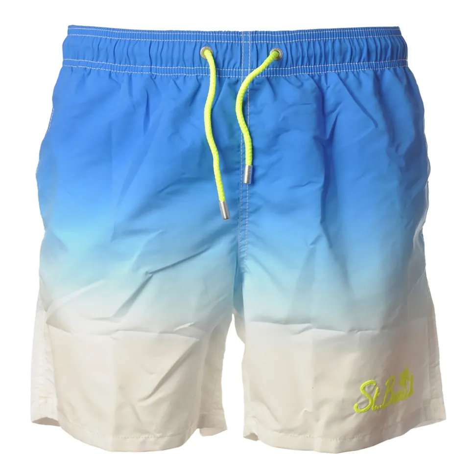 Boxer swimsuit with elastic waist and drawstring closure, entirely made in degradé effect, Sainth Barth.