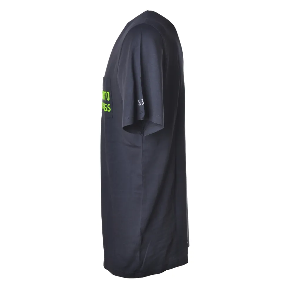 Basic T-Shirt with pocket with embroidered writing “Chupito for a Kiss” on the front left and print glasses for chupito with salt and lime, Saint Barth.