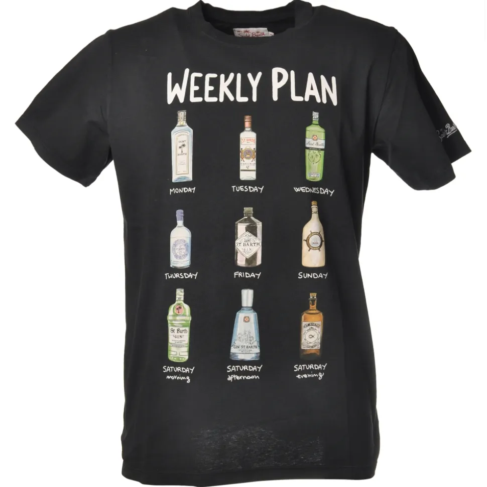Short-sleeved crew-neck T-Shirt, with Weekly Plan print on the front, with bottle print on the front, Saint Barth.