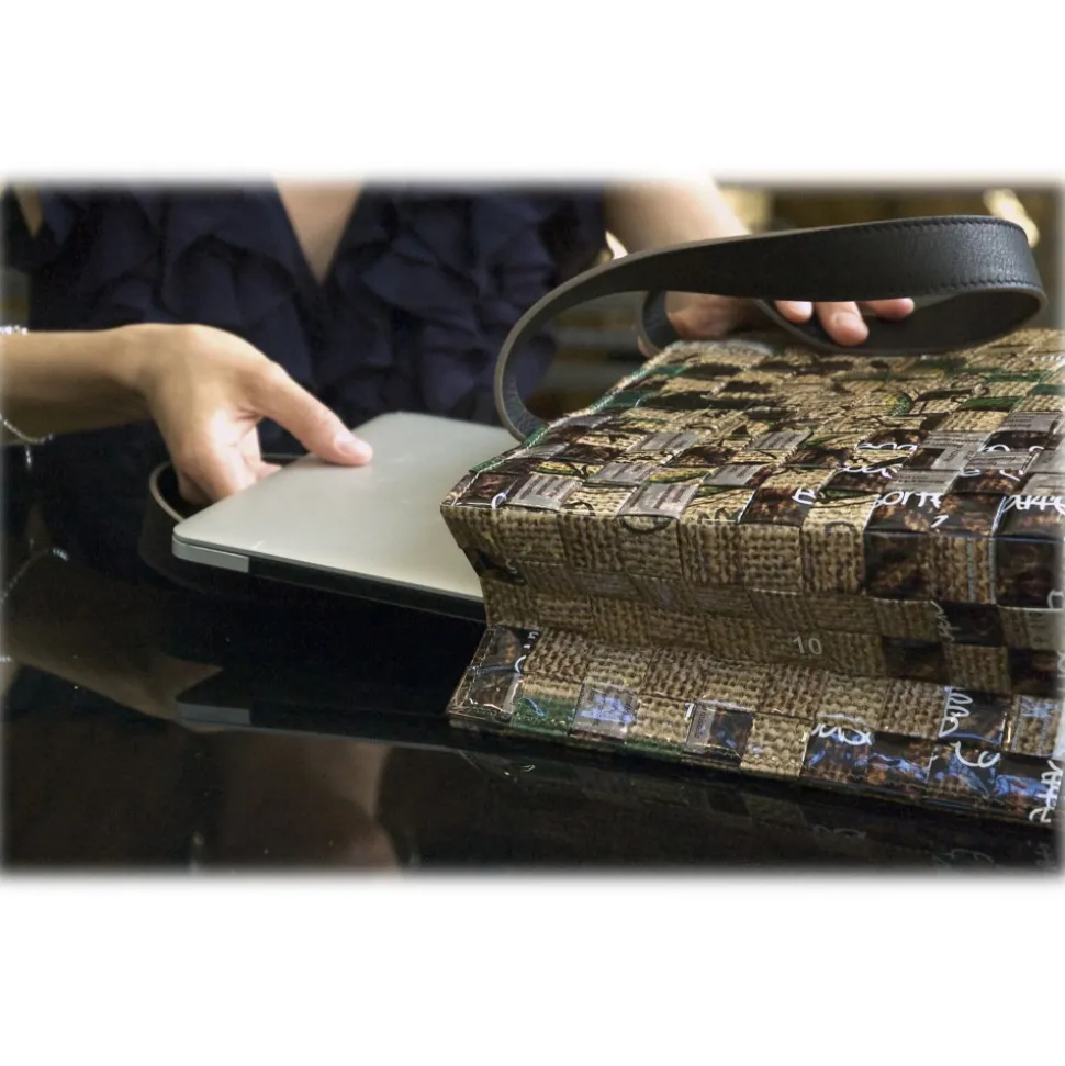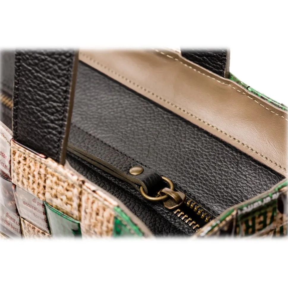 The oldest and most widespread Arabica coffee variety is the name of the Aroma Collection Tote Bag. A large bag with robust leather handles fully lined with a large inside pocket. The upper part is finished in leather with a practical metal zip. In the lower part there are four metal feet to guarantee the protection of the bottom. A model with an enveloping and decisive aroma.