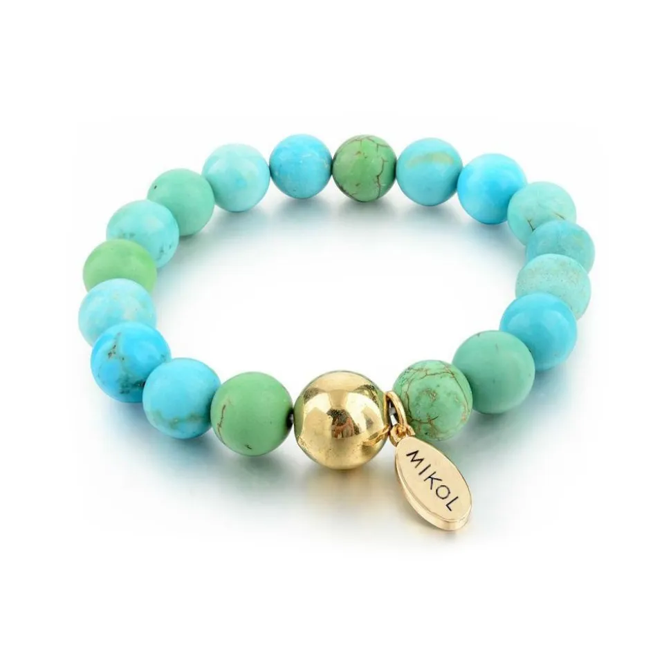 Aquamarine beaded bracelet is designed for all! These fashionable bracelets are truly one of a kind. Its vibrant defining colors symbolizes courage, integrity and power. Each bead is composed of natural shades of dominant colors to emphasize its mysteriousness. This bracelet is designed for the bold and daring!