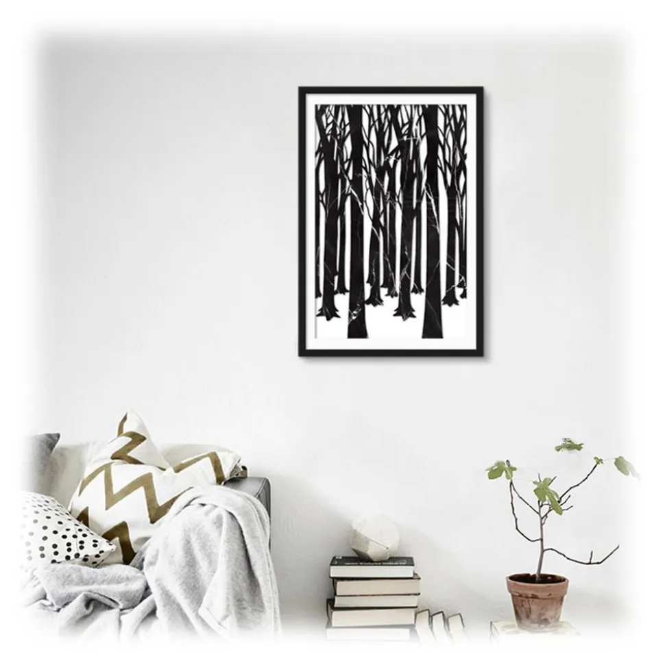 This is one of our favorites! Beautiful dark Nero Marquina wood forest with clear white snowy background as a contrast to give it that mystery yet, elegant taste for your room. The beauty lays within the trays with each natural veining to bring this art piece to life.