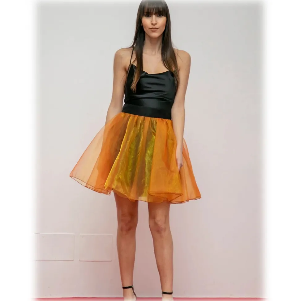 Miriam Tirinzoni – Black Dress with Orange Organza Skirt – Dresses – Luxury Exclusive Collection