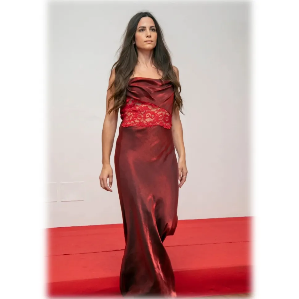 Miriam Tirinzoni – Elegant Red Silk Dress with Lace Details – Dresses – Luxury Exclusive Collection