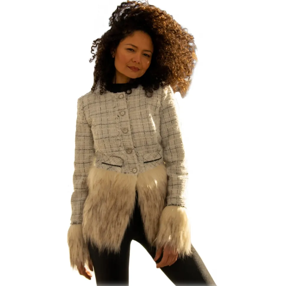 Miriam Tirinzoni – Jacket with Matching Faux Fur Details – Cream – Jacket – Luxury Exclusive Collection