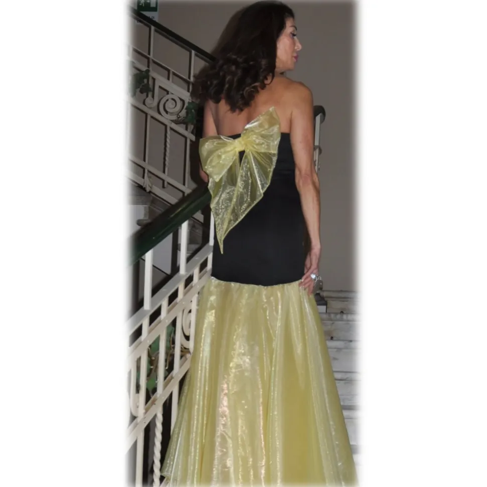 Miriam Tirinzoni – Long Black Dress with Yellow Tulle on The Bottom – Dresses – Luxury Exclusive Collection