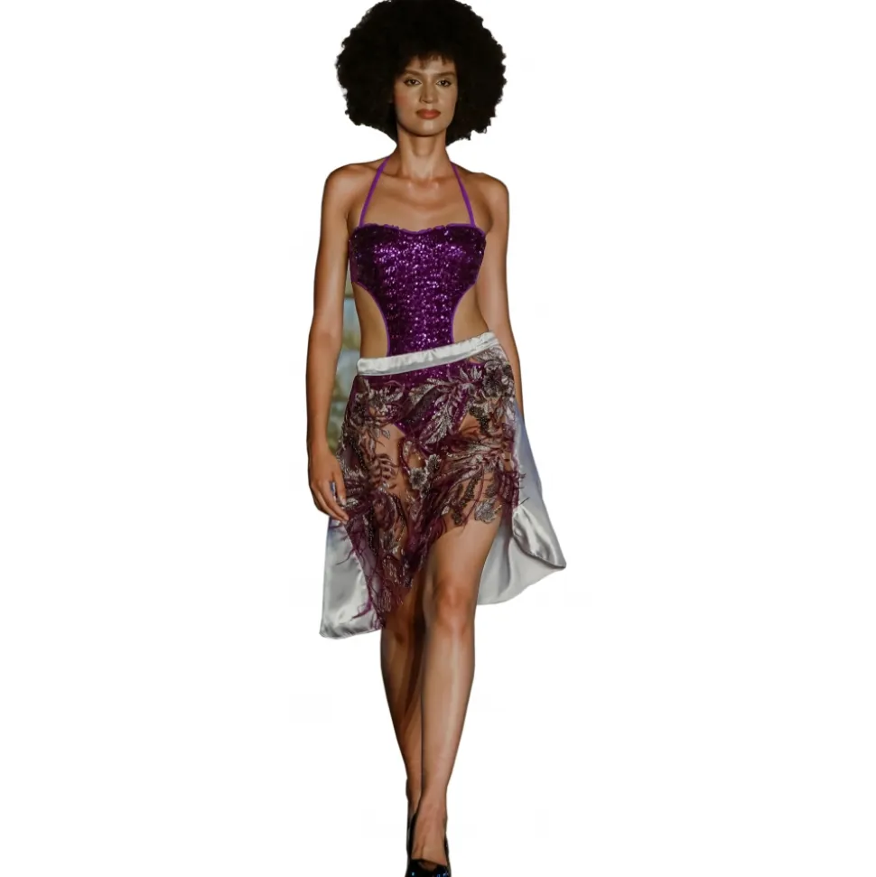 Miriam Tirinzoni – Purple Pareo Bikini with Feather Skirt – Skirt – Luxury Exclusive Collection