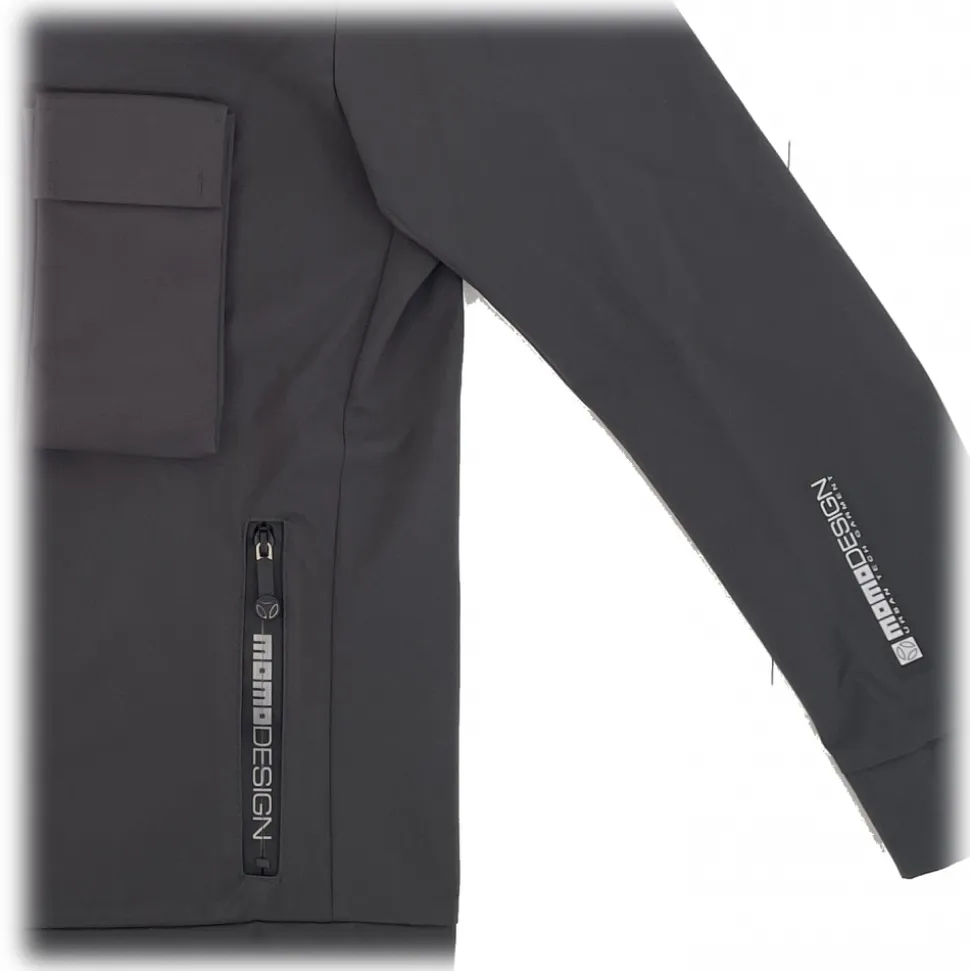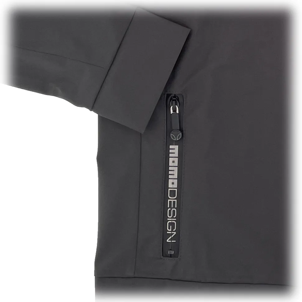 Finally, LOSANNA presents the typical customizations of MOMODESIGN garments, such as the pneumatic effect front zip with personalized zip puller, the two side pockets with waterproof zips with logo and finally the MOMODESIGN silkscreen print on the sleeve