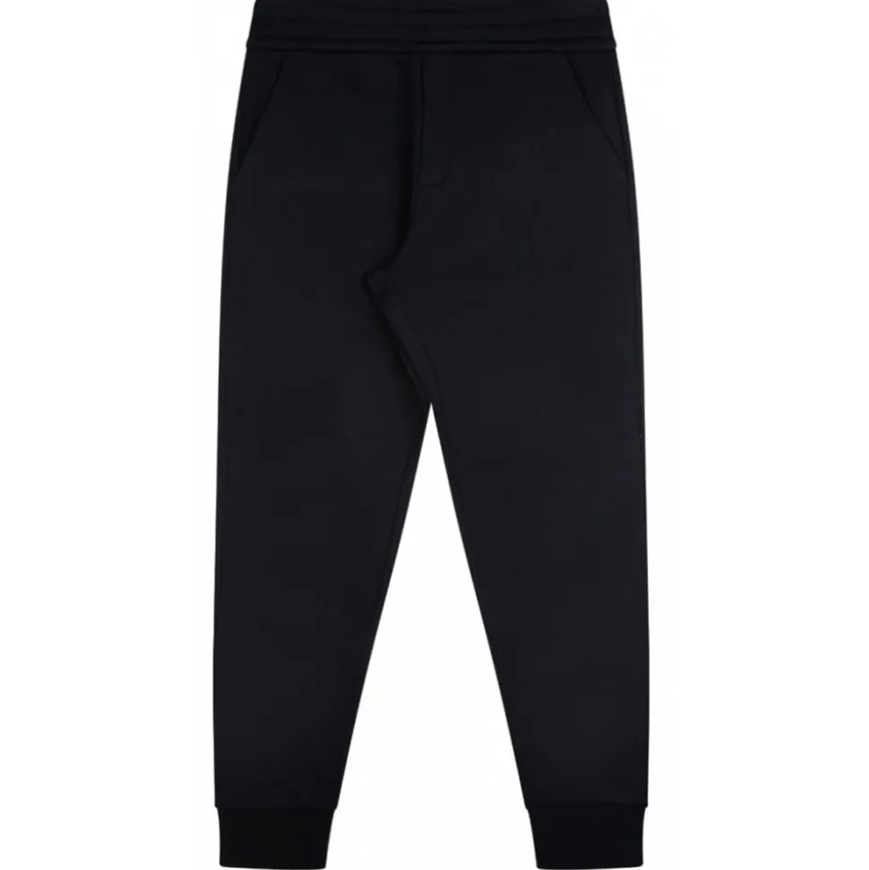Moncler Kids Navy Blue Trousers. Navy blue cotton trousers, back logo in contrasting colour, grosgrain label on the rear, elasticated waist band, two front pockets.