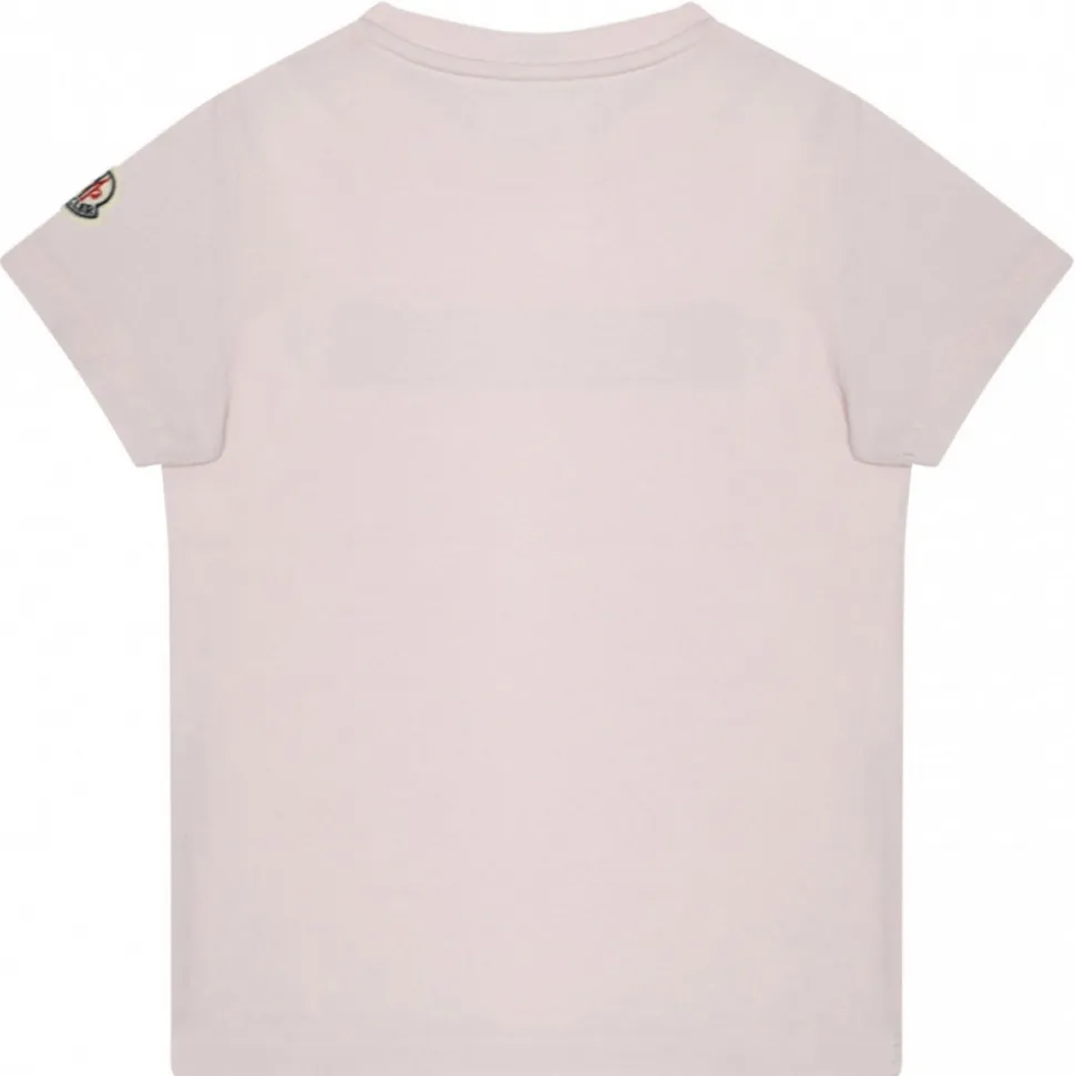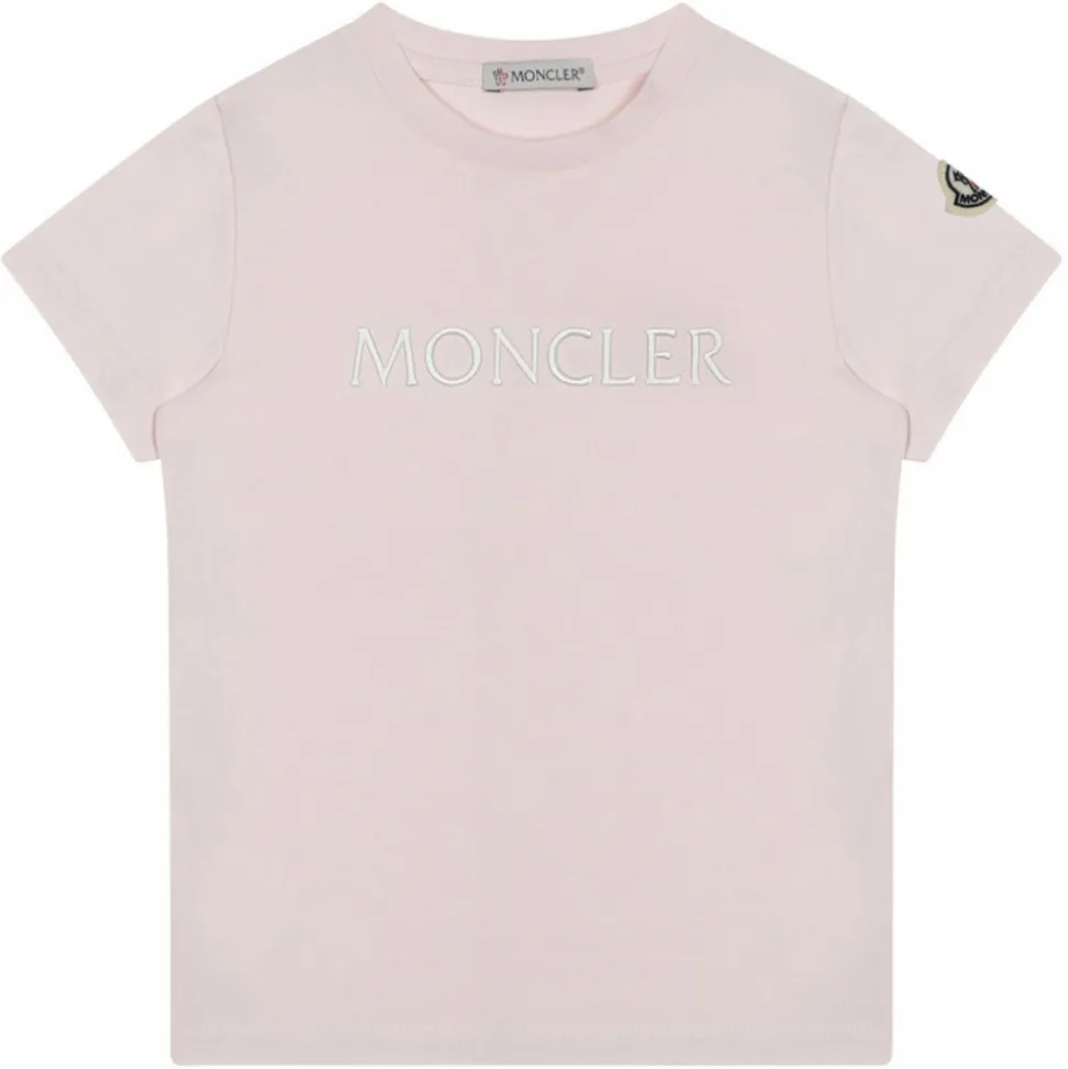 Moncler Stretch Jersey Pink T-shirt with crew neck. Moncler lettering embroidered in the chest. Logo in the left sleeve.