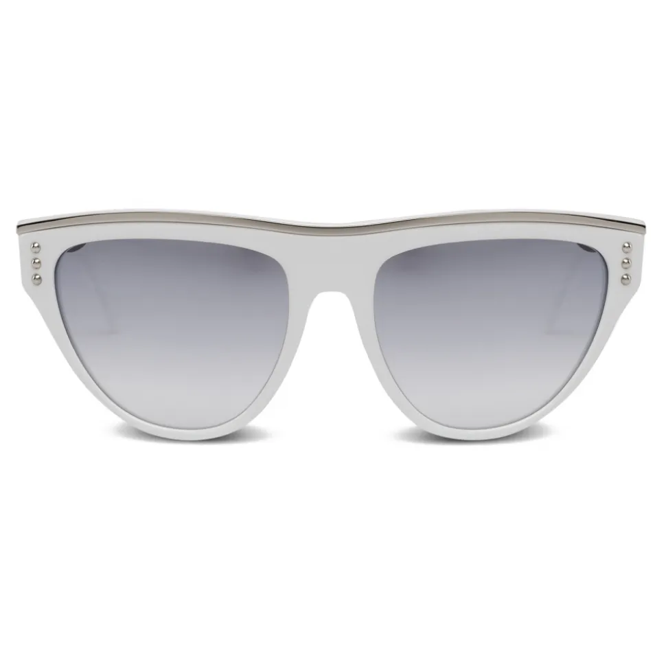 Frame of white acetate decorated with silver-colored metal details