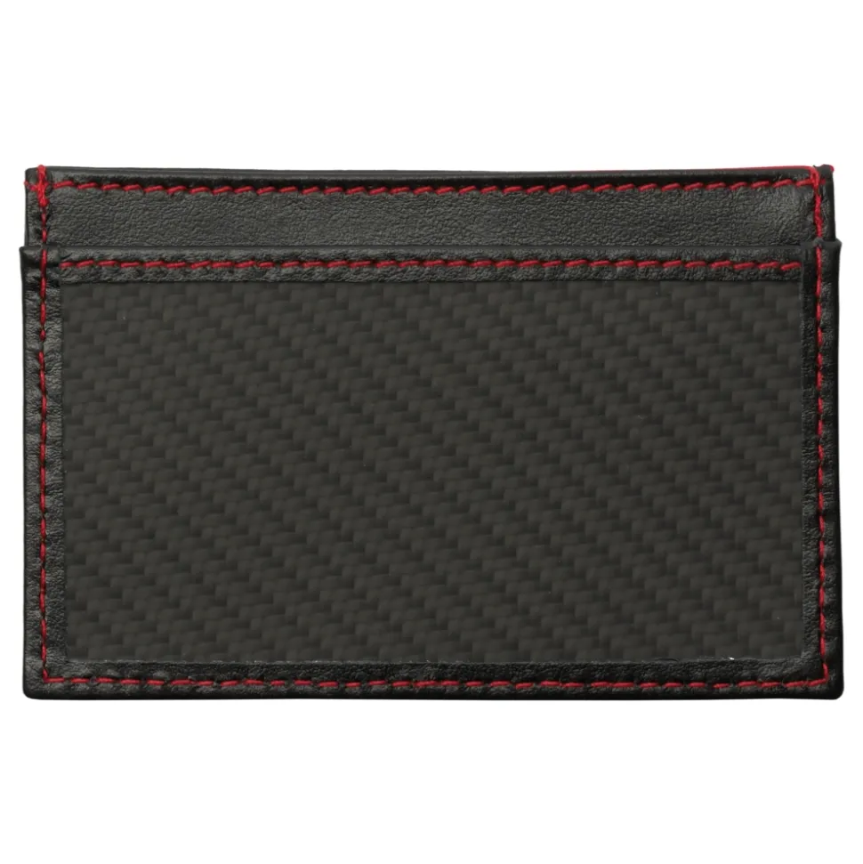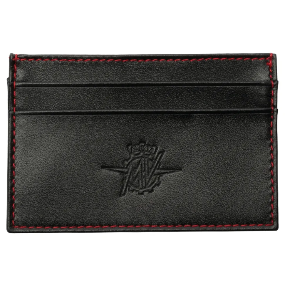 Introducing the TecknoMonster MV Agusta Carbon Card Holder, a slim and stylish card holder in a black colourway with remarkable red contrast stitching. Features card slots to hold all your credit cards and IDs securely with easy access when needed. Made from the most premium calf leather and carbon fiber to ensure durability. Detailed with an embossed MV Agusta logo on the front and a carbon fiber overlay on the back.