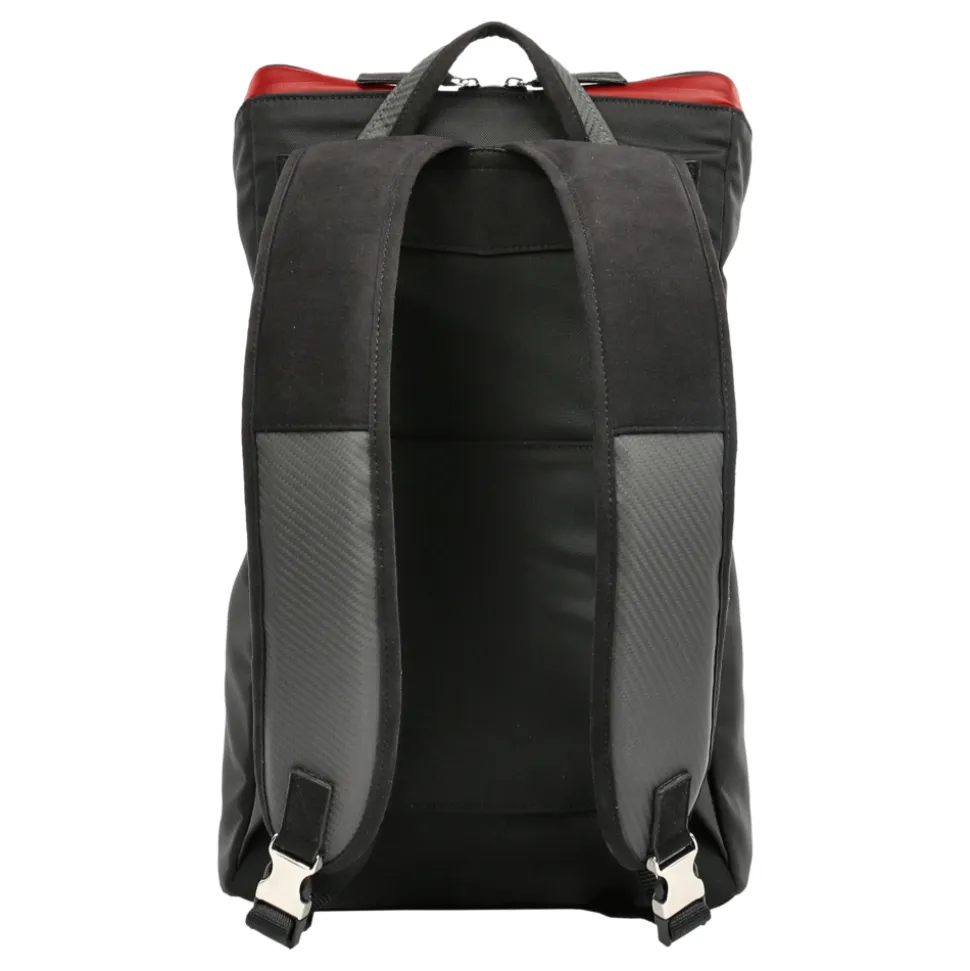 Introducing the Carbon Backpack by MV Agusta in collaboration with TecknoMonster. A super light small backpack made with aerospace material and handmade Italian calf leather. This stunning backpack features double exterior pockets to hold small essentials and one main compartment to store all your belongings. Keep everything dry and secured inside with a rubber water-resistant zip. Carefully store your items within the inner organizer or inner zippered pocket. Adjust the length of the backpack for your comfort with adjustable straps. If travelling with luggage, easily secure the backpack with the rear trolley sleeve. Made in Italy.