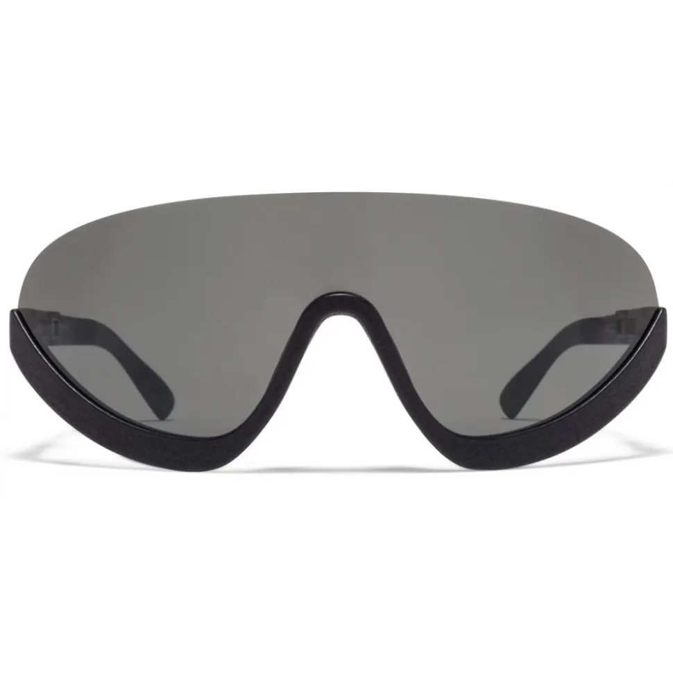 Made of MYLON – an exceptionally light and highly durable material – BLAZE in MD1 Pitch Black with Dark Grey Solid lenses is a shield-shaped sun frame from the MYKITA & BERNHARD WILLHELM collection. Handcrafted in Berlin.