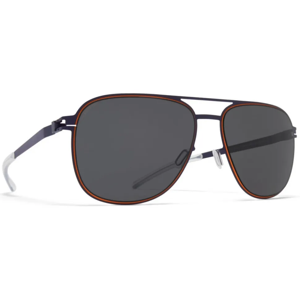 Made of lightweight stainless steel, CALEB in Indigo/Orange with Polarised Pro Hi-Con Grey lenses is an aviator-shaped sunglass frame from the MYKITA NO1 collection. Handcrafted in Berlin.