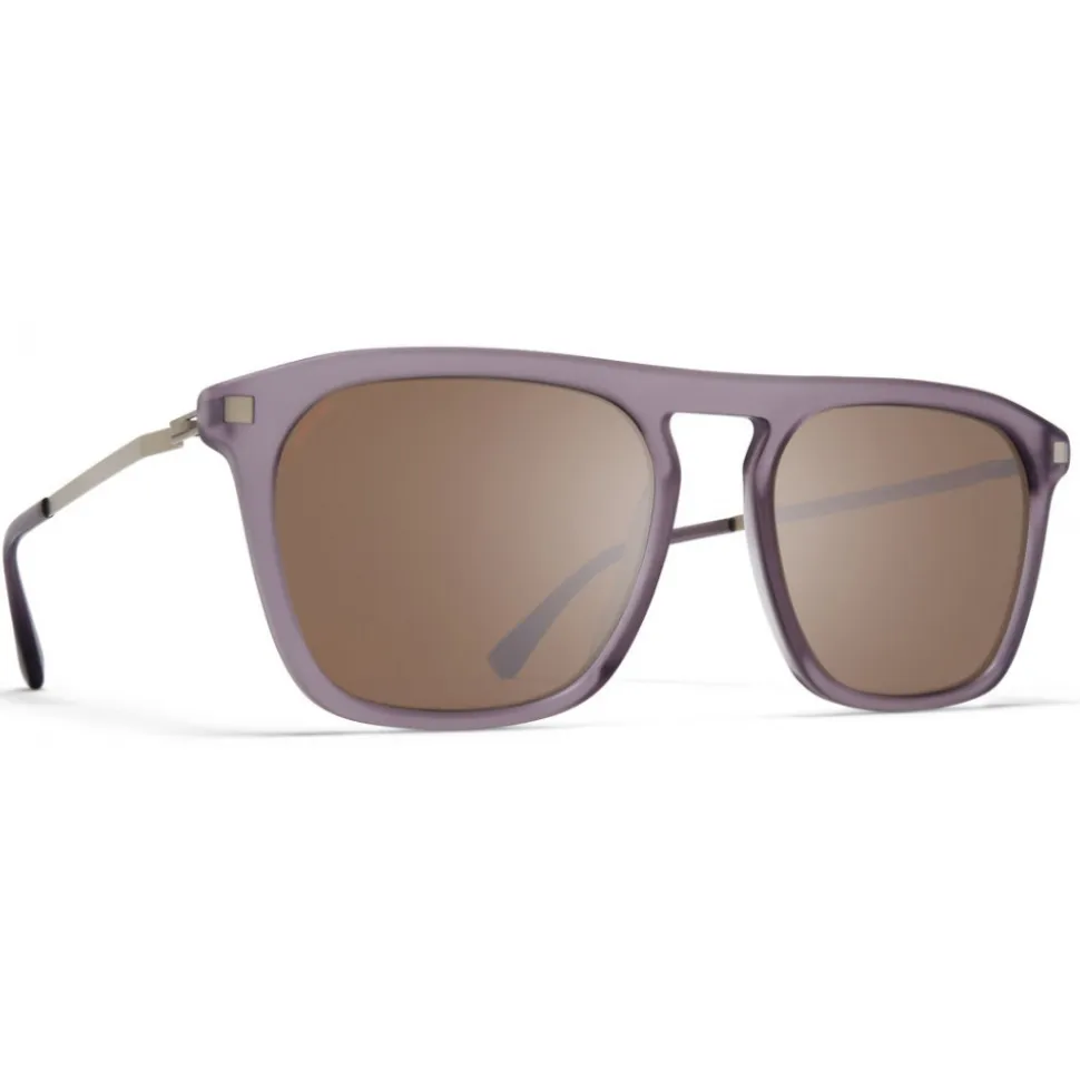 Made of lightweight stainless steel and slender acetate, KALLIO in C100 Matte Smoke/Matte Silver with Polarised Pro Hi-Con Brown Silver Flash lenses is a square-shaped sunglass frame from the MYKITA LITE ACETATE collection. Handcrafted in Berlin.