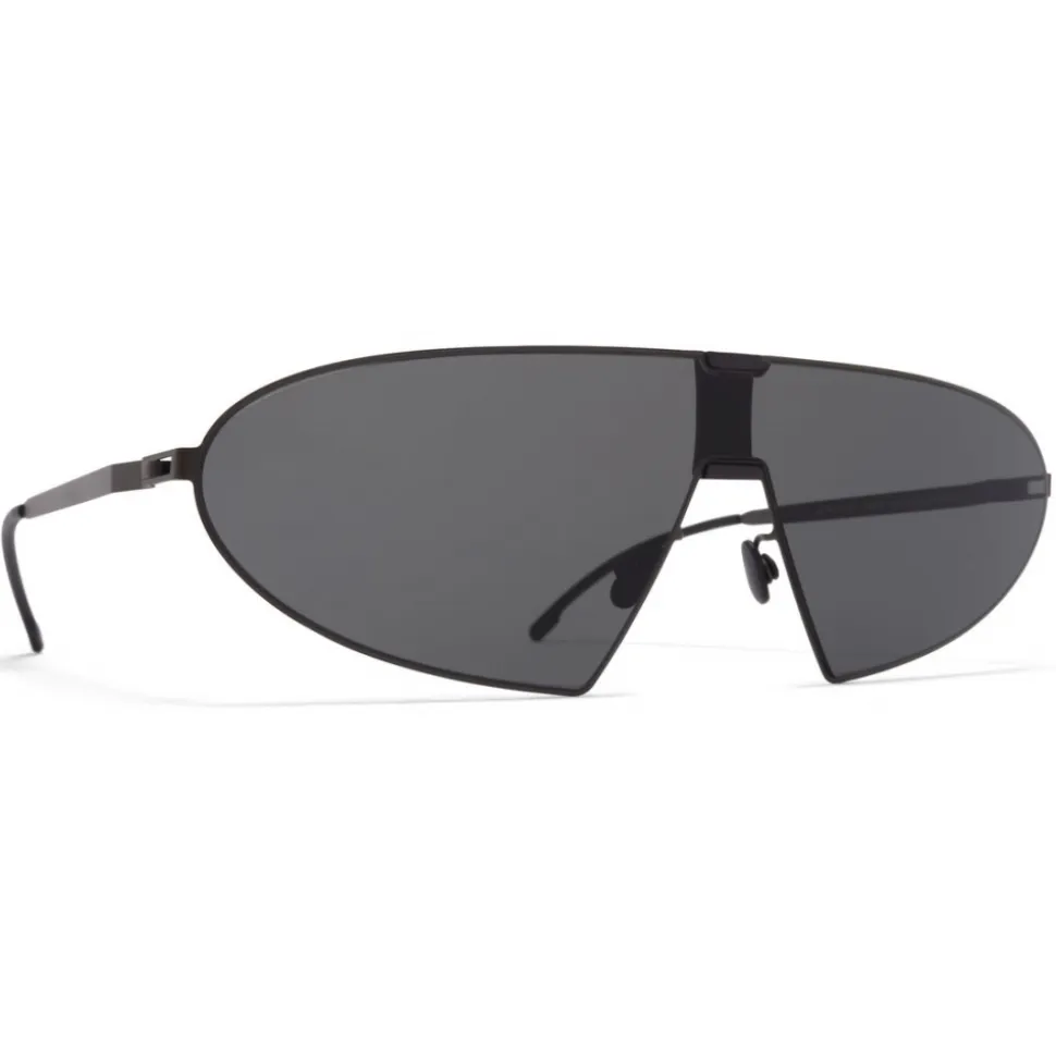 Made of lightweight stainless steel, KARMA in MH1 Black/Pitch Black with Dark Grey Solid Shield lenses is an aviator-shaped sunglass frame from the MYKITA & BERNHARD WILLHELM collection. Handcrafted in Berlin.