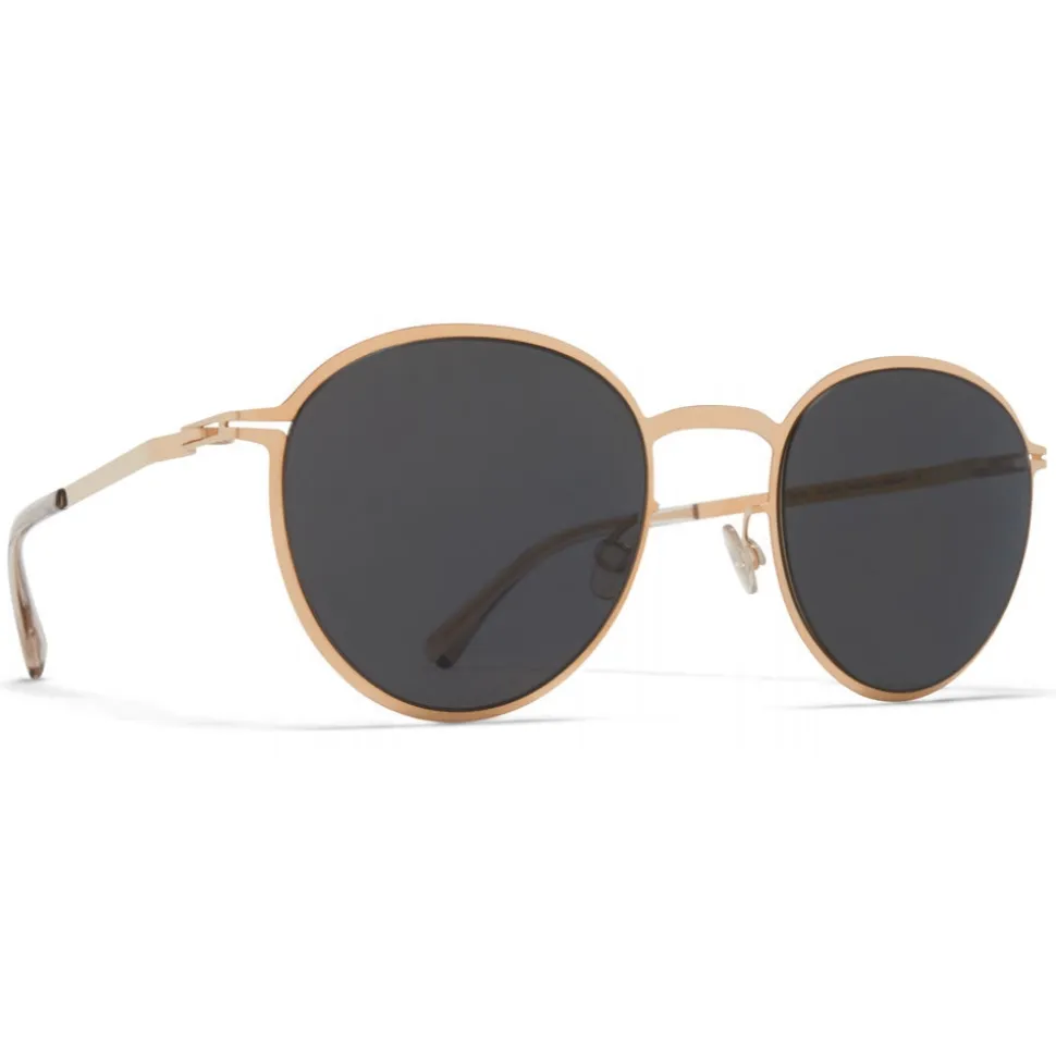 Made of lightweight stainless steel and slender acetate, KASIMIR in Champagne Gold with Dark Grey Solid lenses is a panto-shaped sunglass frame from the MYKITA LITE ACETATE collection. Handcrafted in Berlin.