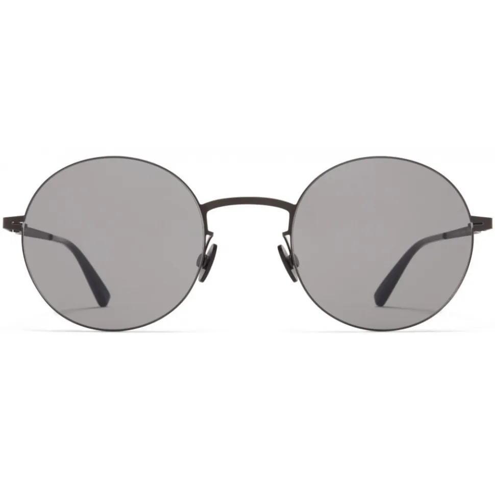 Made of lightweight stainless steel, KAYO in Black with Grey Solid lenses is a round-shaped sunglass frame from the MYKITA LESSRIM collection. Handcrafted in Berlin.