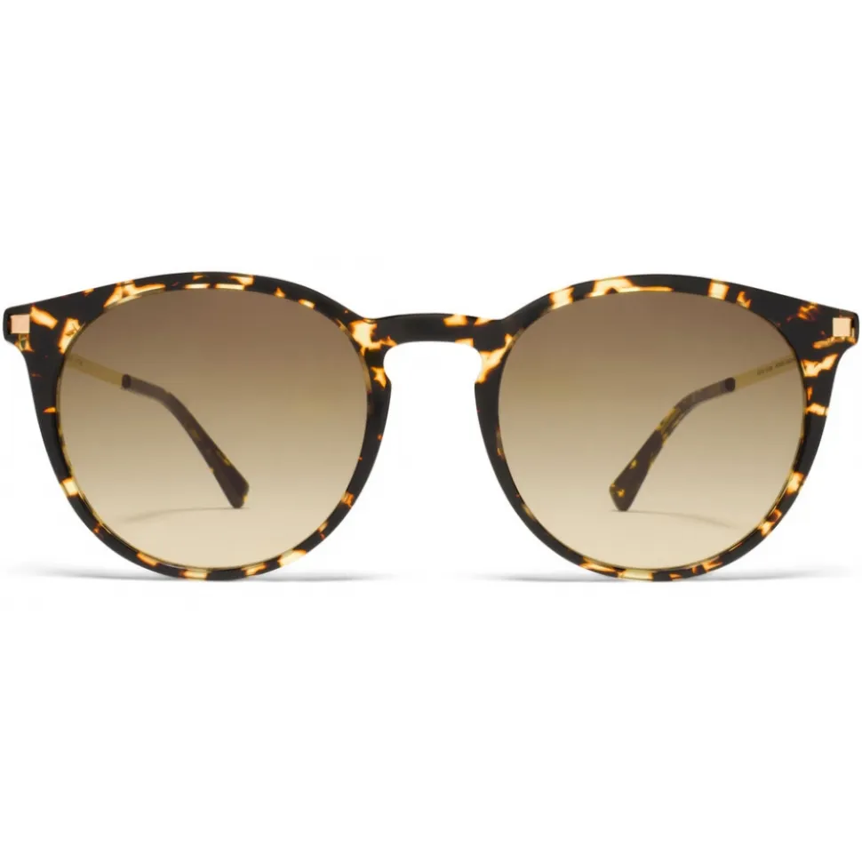 Made of lightweight stainless steel and slender acetate, KEELUT in Trinidad/Glossy Gold with Brown/Brown Gradient lenses is a round-shaped sunglass frame from the MYKITA LITE collection. Handcrafted in Berlin.
