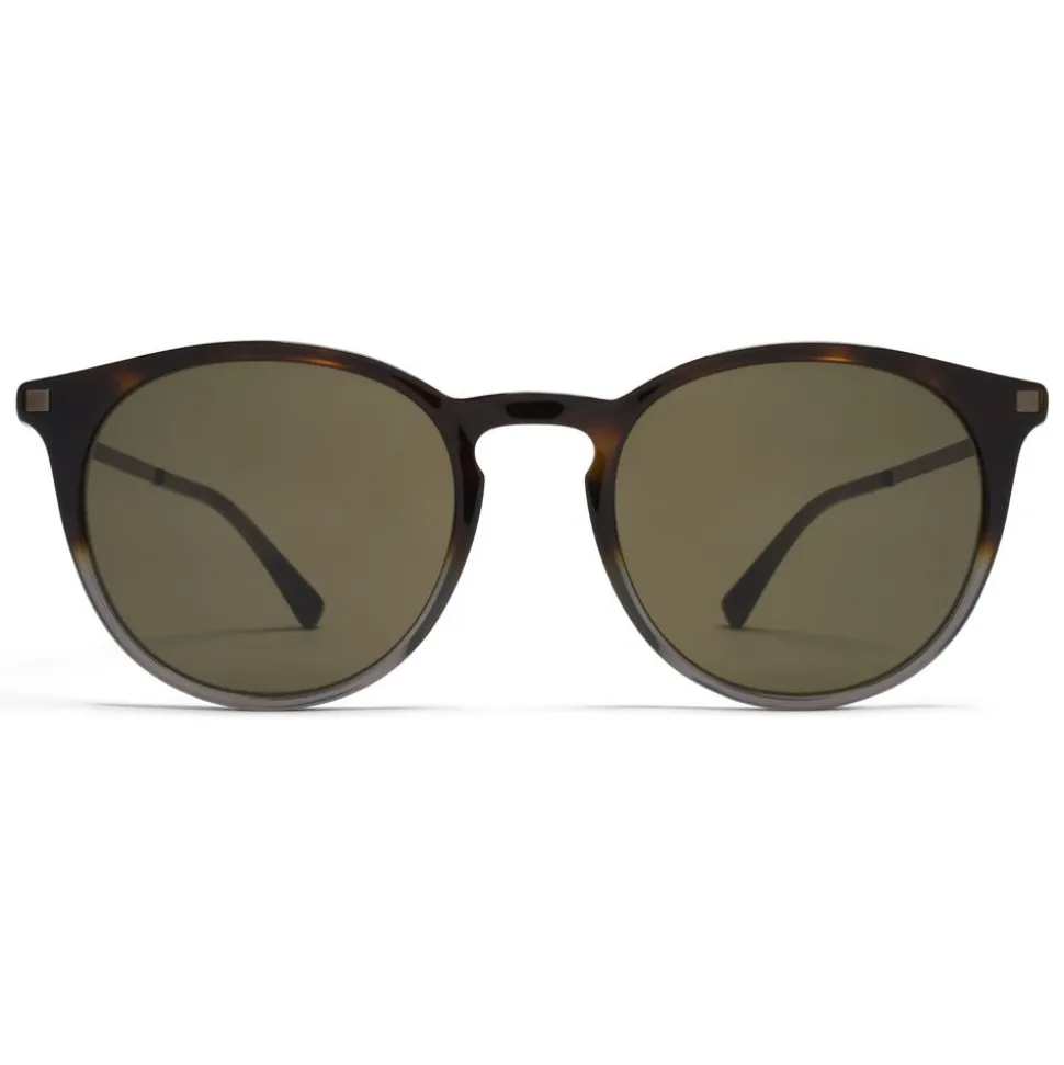 Made of lightweight stainless steel and slender acetate, KEELUT in Santiago Gradient/Shiny Graphite with Raw Green Solid lenses is a round-shaped sunglass frame from the MYKITA LITE collection. Handcrafted in Berlin.