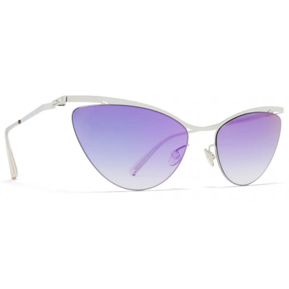 Made of lightweight stainless steel, MIZUHO in Shiny Silver with Pink Gradient Mirror lenses is a butterfly-shaped sunglass frame from the MYKITA LESSRIM collection. Handcrafted in Berlin.