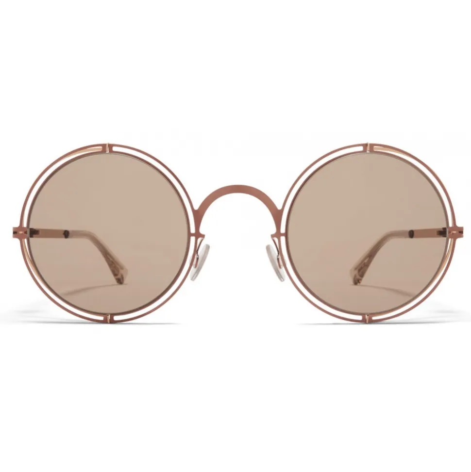 Made of lightweight stainless steel with functional details in acetate, MMCRAFT001 in Shiny Copper with Light Brown Solid lenses is a round-shaped sunglass frame from the MYKITA + MAISON MARGIELA collection. Handcrafted in Berlin.