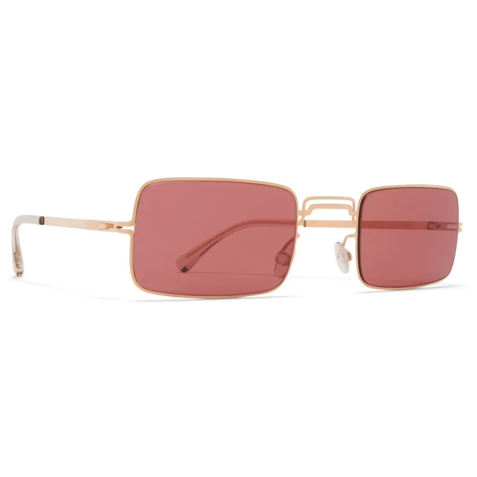 Made of lightweight stainless steel with functional details in acetate, MMCRAFT003 in Champagne Gold with Purple Solid lenses is a square-shaped sunglass frame from the MYKITA + MAISON MARGIELA collection. Handcrafted in Berlin.